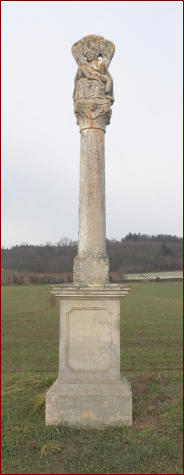 1982 wurde die Säule von einem Mähdrescher umgefahren und, wie ja die Inschrift besagt, 1983 wieder aufgestellt.